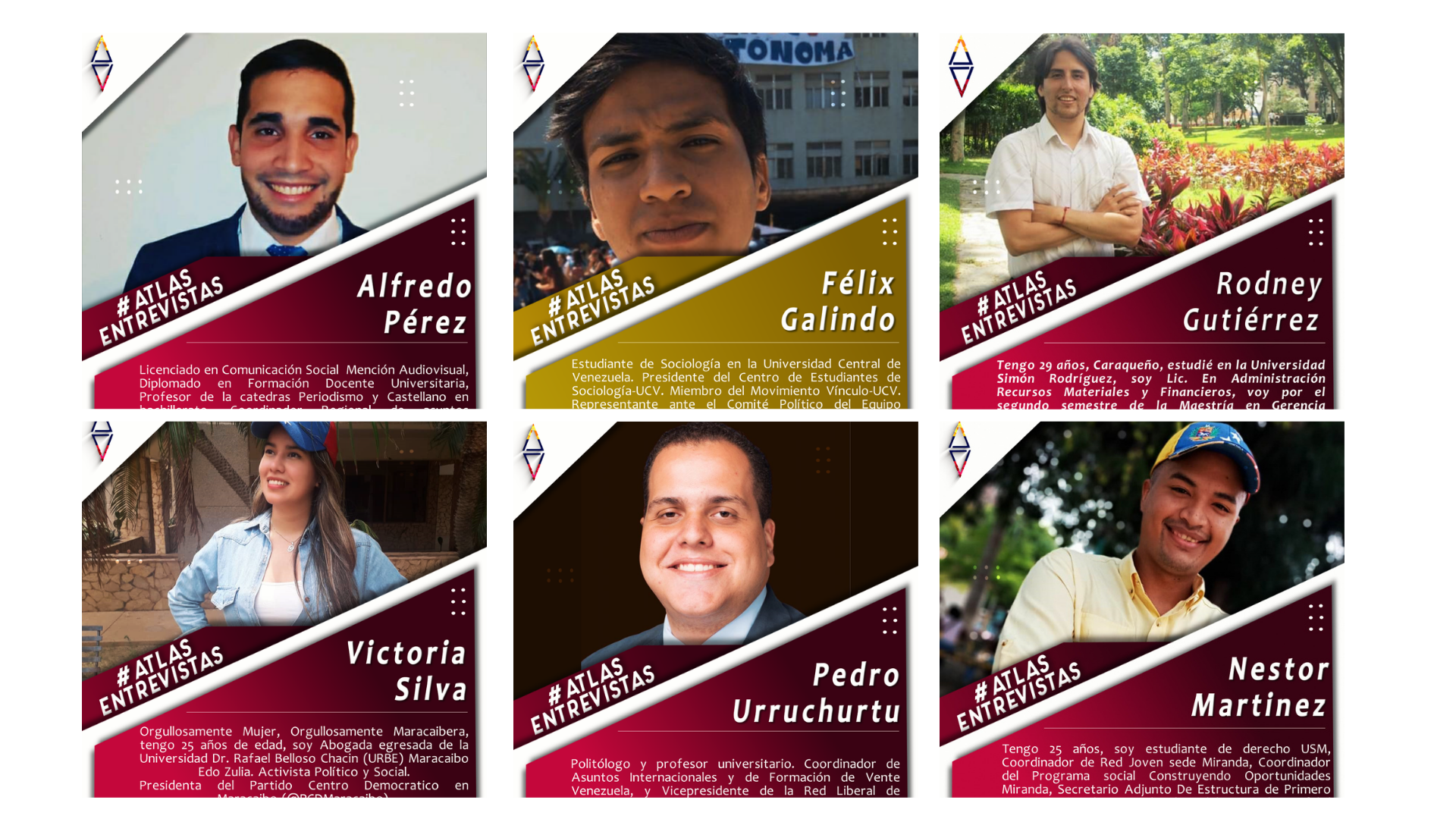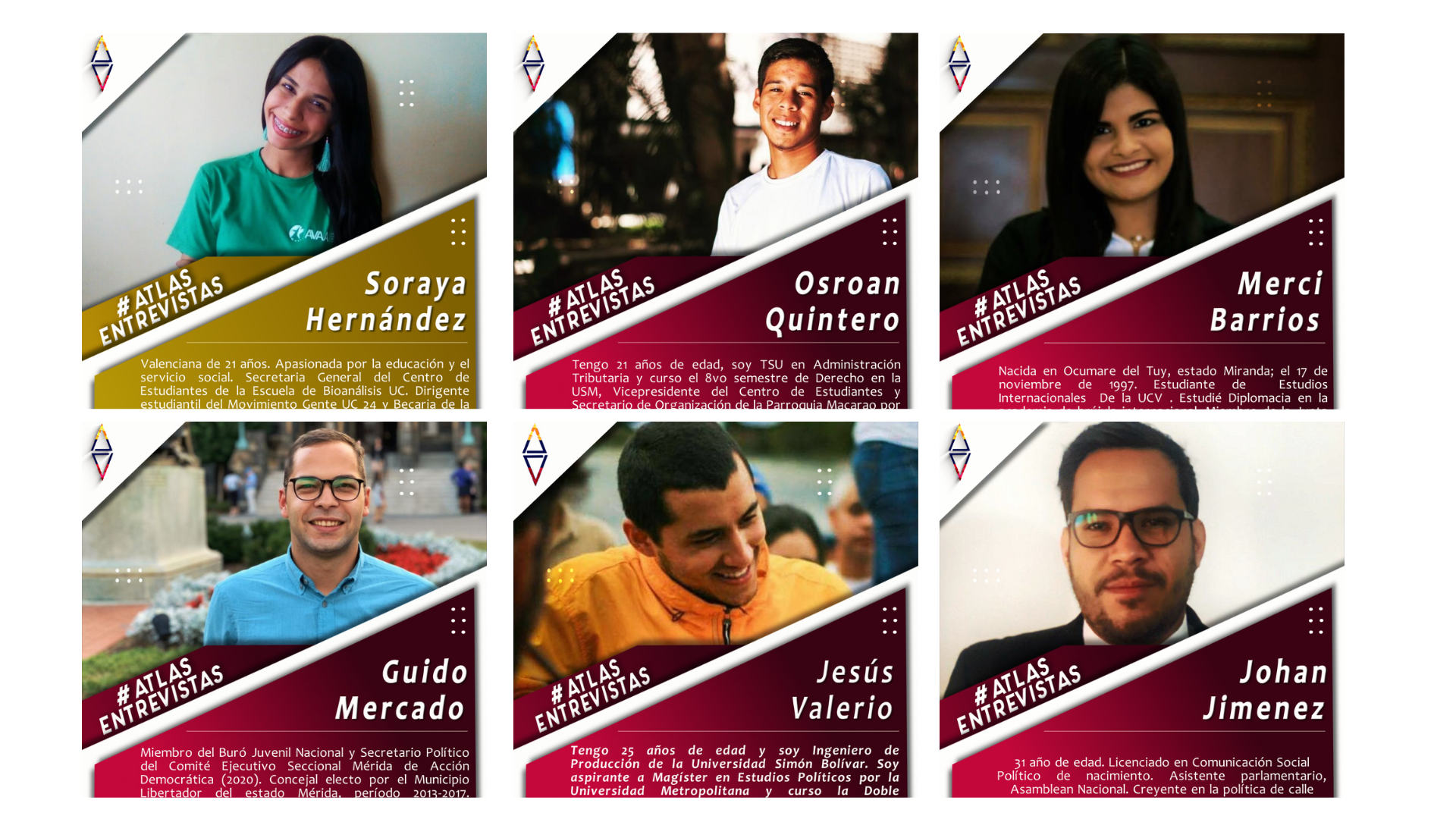 Atlas Venezuela es una plataforma digital que visibiliza y reconoce los liderazgos emergentes del país, tanto de hombres como mujeres, aumentando así el alcance de aquellas personas que realizan actividades relacionadas a la vida pública.